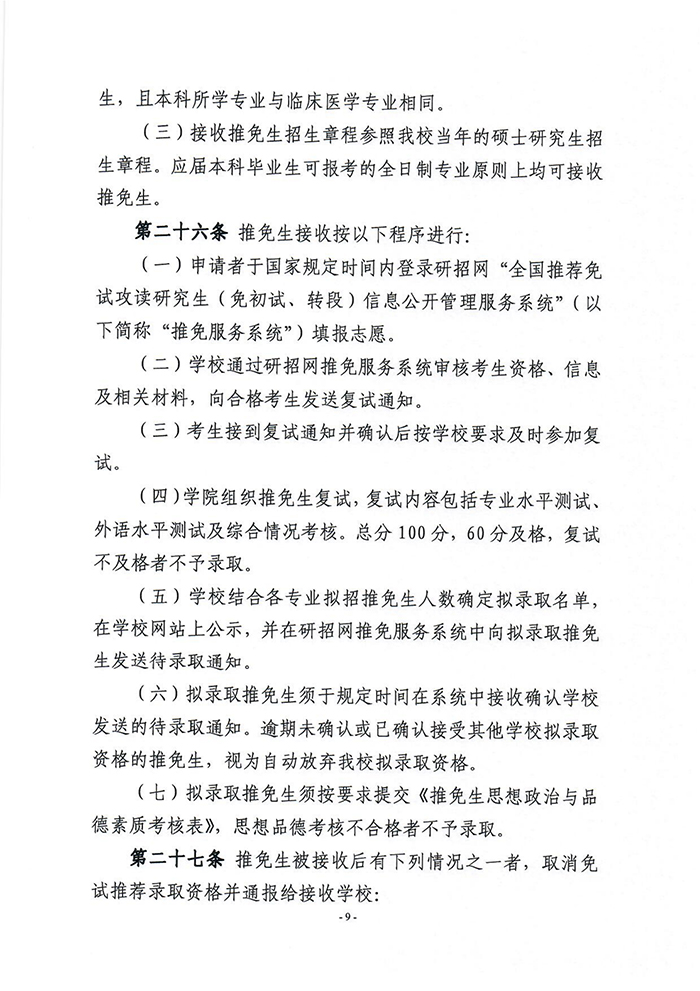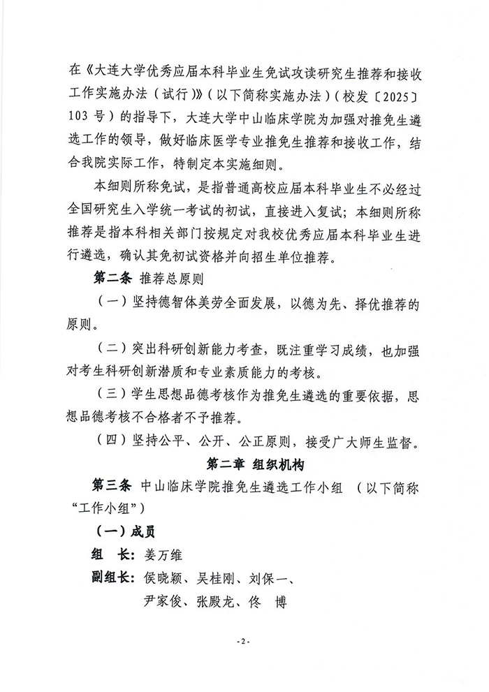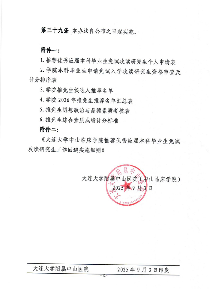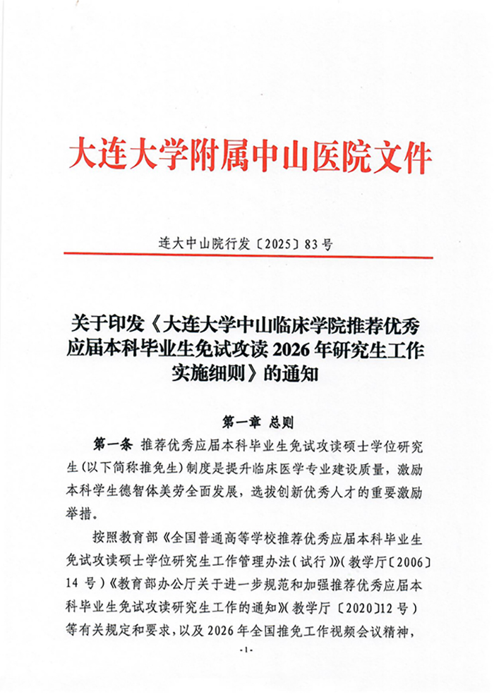 关于印发《大连大学中山临床学院推荐优秀应届本科毕业生免试攻读2026年研究生工作实施细则》的通知