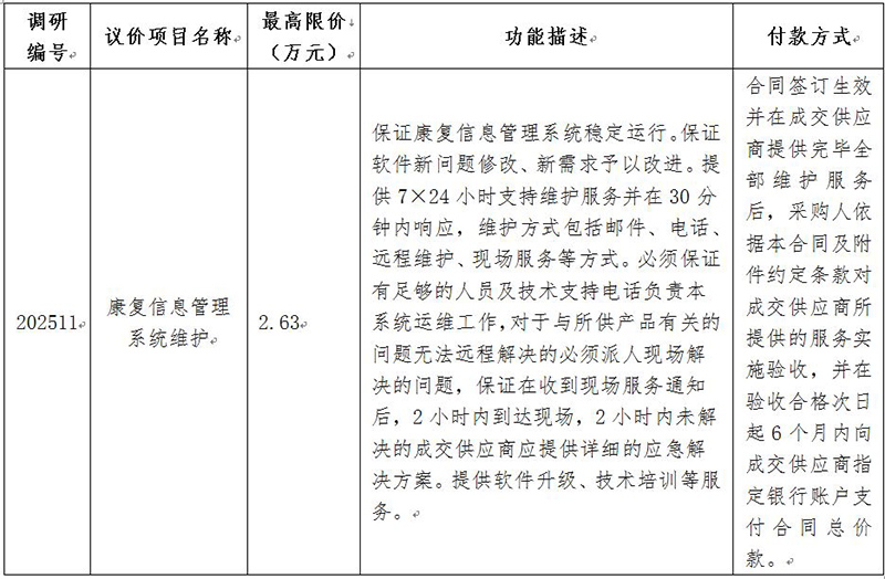 为充分调研市场供给及使用情况,我院拟对下列信息化项目进行市场调研,欢迎能提供此产品的厂家或经销商参与调研。