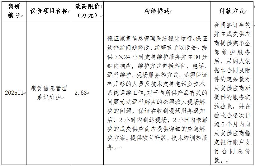 为充分调研市场供给及使用情况,我院拟对下列信息化项目进行市场调研,欢迎能提供此产品的厂家或经销商参与调研。