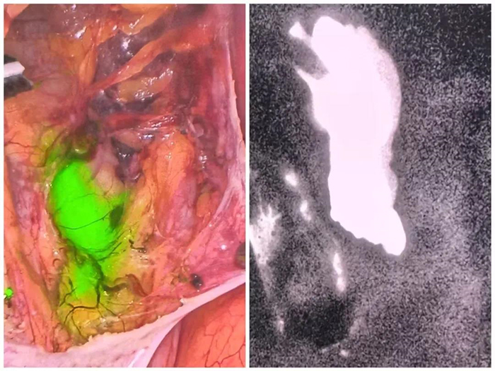 荧光腹腔镜下盆腔前哨淋巴结显影图