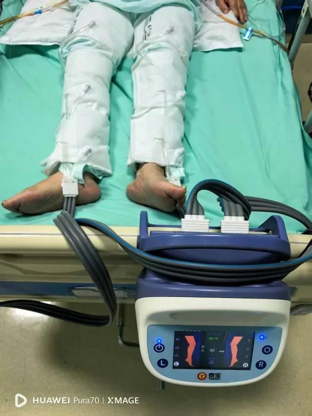 1.正确使用气压泵: 护士们耐心地向患者演示了医用下肢气压泵的正确佩戴方法与使用时长,强调了其在促进下肢血液循环、防止血液淤滞中的重要作用。