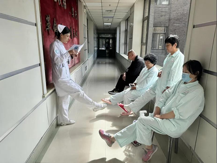 2.指导足背跖曲锻炼:“踝泵运动”(即足背跖曲锻炼)是预防血栓最简单、有效的措施之一。护士们亲自示范“勾脚尖、绷脚尖”的标准动作,确保每一位患者都能掌握要领,并鼓励他们将其作为卧床期间的“常规功课”。