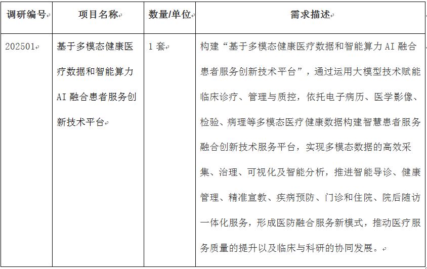 为充分调研市场供给及使用情况,我院拟对下列信息化项目进行市场调研,欢迎能提供此产品的厂家或经销商参与调研。
