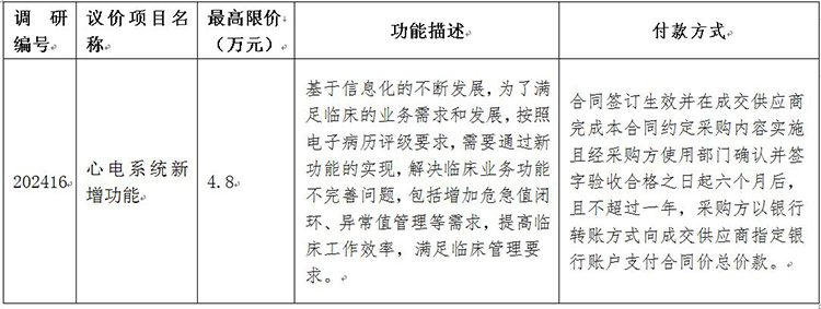 为充分调研市场供给及使用情况,我院拟对下列信息化项目进行市场调研,欢迎能提供此产品的厂家或经销商参与调研。