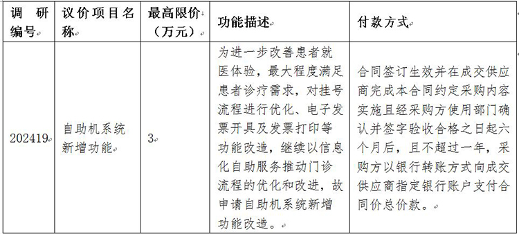 为充分调研市场供给及使用情况,我院拟对下列信息化项目进行市场调研,欢迎能提供此产品的厂家或经销商参与调研。