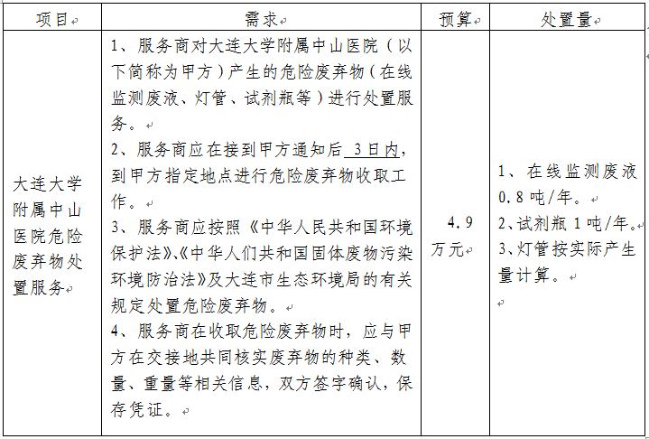 大连大学附属中山医院危险废弃物处置服务调研公告