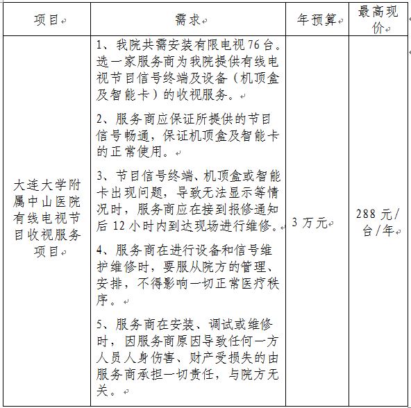 2025年大连大学附属中山医院有线电视节目收视服务项目市场调研公告