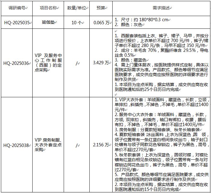 为充分调研后勤物资市场供给及使用情况,我院拟对后勤物资进行市场调研,欢迎能提供此类产品的厂家或经销商参与调研。