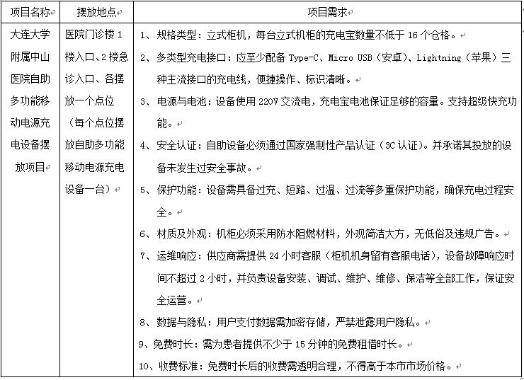 2025年度大连大学附属中山医院自助多功能移动电源充电设备摆放项目市场调研公告(第二次)