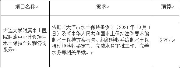 大连大学附属中山医院肿瘤中心建设项目水土保持全过程咨询服务市场调研公告